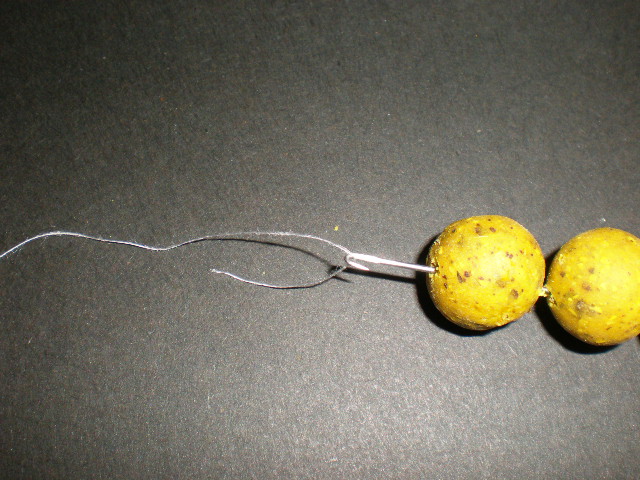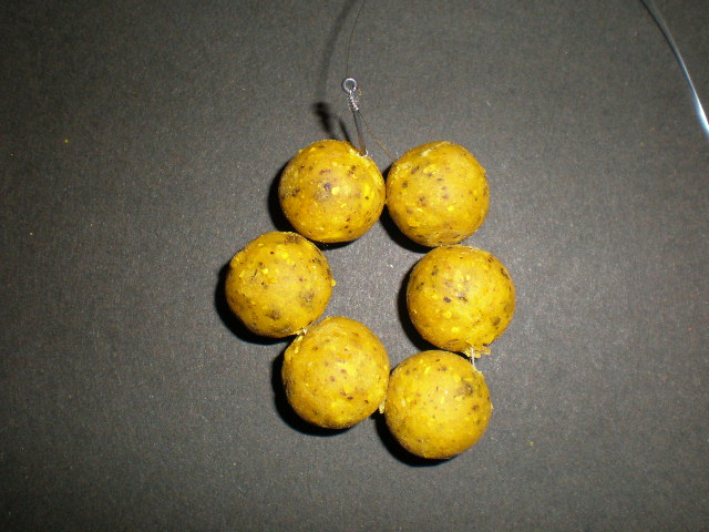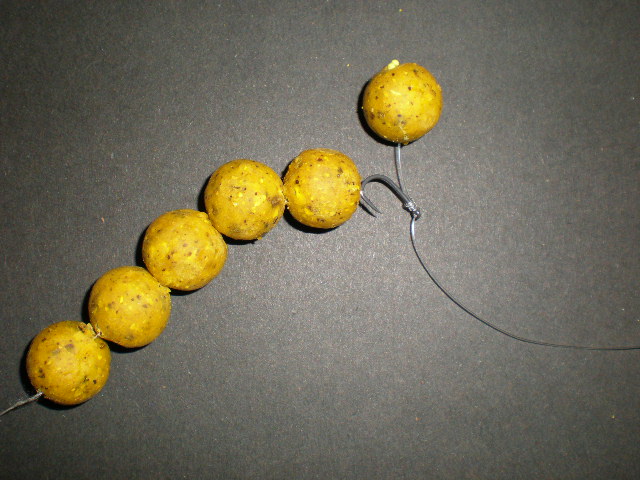 PVA String and Tape There are lots of easy and simple ways these can be used to great effect. The easiest and most common is the stringer - Thread approximately 4 to 5 hook baits (boilies, corn, meat, etc) on to a long baiting needle. Then fasten the PVA string or tape on to the hook of the baiting needle. Then feed the hook baits slowly on to the string or tape. Then simply tie one end of the PVA string or tape onto your hook or hair. All you have to do now is cast out your line. The PVA will melt in the water leaving bait around your hook. The ring of pearls - Exactly the same instructions as the stringer but this time tie both ends onto your hook or hair. This time the bait will lie closer to your hook. Great for weedy waters. In line stringer - As above but the time tie one end on to your hook and the other end on to your safety clip or simply on your line.